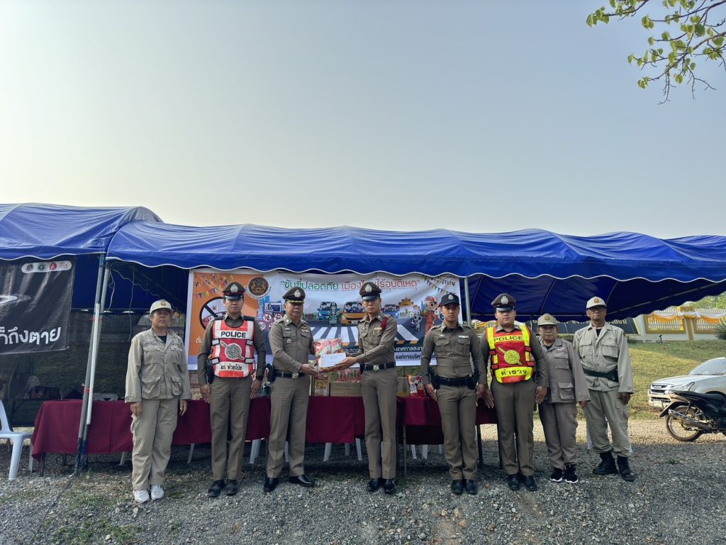 สภ.แม่ห้วยโป่ง ภ.จว.แม่ฮ่องสอน วันนี้ (13 เม.ย. 2567) เวลา 10.00 น. โดยการอำนวยการของ พ.ต.ท.ภูเบศวร์ คำภิระยศ สว.สภ.ห้วยโป่ง มอบหมายให้ ร.ต.อ.โสภณวิชญ์ บำรุงศักดิ์.สภ.ห้วยโป่ง, นำข้าราชการตำรวจประจำจุดตรวจบูณาการร่วมป้องกันและลดอุบัติเหตุทางถนนช่วงเทศกาลสงกรานต์ ประจำปี 2567 พร้อมด้วยเจ้าหน้าที่ฝ่ายปกครองตำบลห้วยโป่ง จังหวัดแม่ฮ่องสอน ร่วมกันตั้งจุดตรวจ จุดสกัด ป้องกันและลดอุบัติเหตุทางถนน ช่วงเทศกาลสงกรานต์ ประจำปี 2567 และได้ดำเนินกิจกรรม โครงการจิตอาสา “ชีวิตวิถีใหม่ ขับขี่อย่างปลอดภัย ไร้อุบัติเหตุ” เนื่องในเทศกาลสงกรานต์ ประจำปี 2567 โดยร่วมกันรณรงค์ประชาสัมพันธ์การสร้างวินัยและความปลอดภัยทางถนน เพื่อป้องกันและลดอุบัติเหตุฯ พร้อมกันนี้ได้ แนะนำเส้นทาง แจกน้ำดื่มให้กับประชาชนที่สัญจร ณ จุดตรวจหลักบูรณาการร่วมป้องกันและลดอุบัติเหตุทางถนน ช่วงเทศกาลสงกรานต์ ประจำปี 2567 บริเวณถนนด้านหน้าเทศบาลตำบลห้วยโป่ง จังหวัดแม่ฮ่องสอน