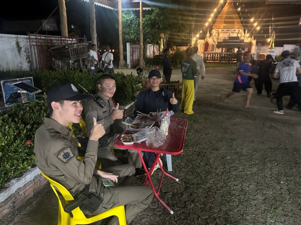 ข่าวกิจกรรม, ข่าวประชาสัมพันธ์ เจ้าหน้าที่ตำรวจสายตรวจดูแลความสงบเรียบร้อยในงาน ปอยอ่องจ๊อด 19 เมษายน 2568 / 0 ความเห็น เมื่อวันที่ 19 ตุลาคม 2567 เจ้าหน้าที่ตำรวจสายตรวจตำบลห้วยโป่ง ได้รับมอบหมายจากผู้บังคับบัญชาให้มาดูแลความสงบเรียบร้อยในงานประเพณีดับไฟเทียน(ปอยอ่องจ๊อด) ที่หมู่บ้านไม้ฮุง ม.5 ต.ห้วยโป่ง อเมือง จว.แม่ฮ่องสอน Facebook iconFacebookTwitter iconTwitterLINE iconLine