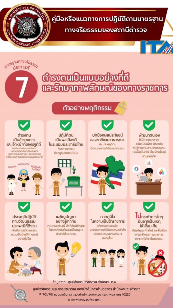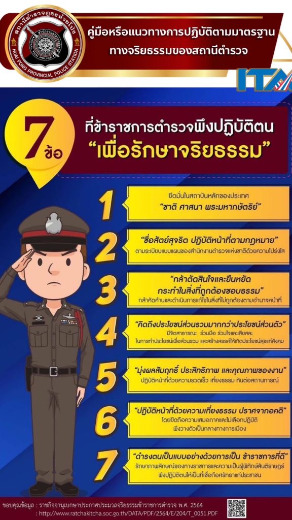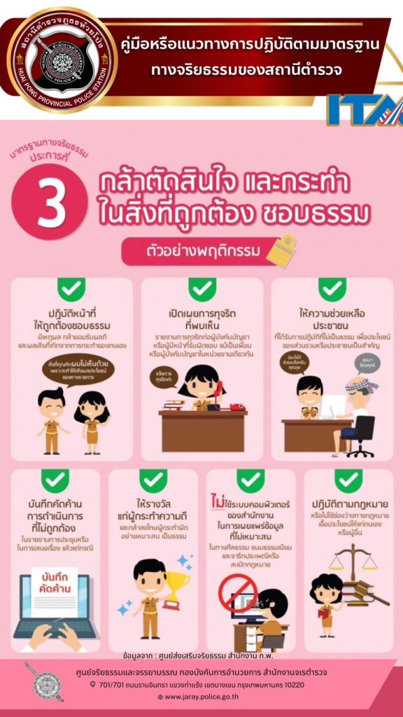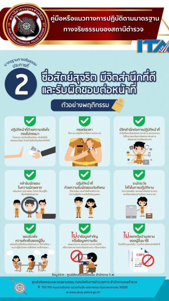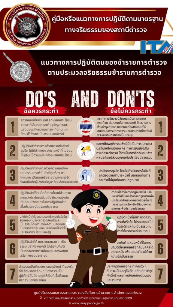 022 คู่มือหรือแนวทางการปฏิบัติตามมาตรฐานทางจริยธรรม 📓 คู่มือหรือแนวทางการปฏิบัติตนของข้าราชการตำรวจ ตามประมวลจริยธรรมข้าราชการตำรวจ ของ สถานีตำรวจภูธรห้วยโป่ง สรุปสาระสำคัญการแนะนำกฎหมายพระราชบัญญัติมาตรฐานทางจริยธรรม พ.ศ.2562 📓 พระราชบัญญัติมาตรฐานทางจริยธรรม พ.ศ. ๒๕๖๒ 📓 ประมวลจริยธรรมข้าราชการตำรวจ พ.ศ.2564 📕สื่อประชาสัมพันธ์ (infographic) แนวทางปฏิบัติ ตามประมวลจริยธรรม สถานีตำรวจภูธรห้วยโป่ง 📕เนื้อหาแนวทางการปฏิบัติตนของข้าราชการตำรวจ ตามประมวลจริยธรรมข้าราชการตำรวจ 📕หนังสือ เจรตำรวจ ที่ 0013.16/976 ลง 26 ตุลาคม 2565 เรื่อง แนวทางการปฏิบัติตนของข้าราชการตำรวจตามประมวลจริยธรรมข้าราชการตำรวจ Facebook iconFacebookTwitter iconTwitterLINE iconLine