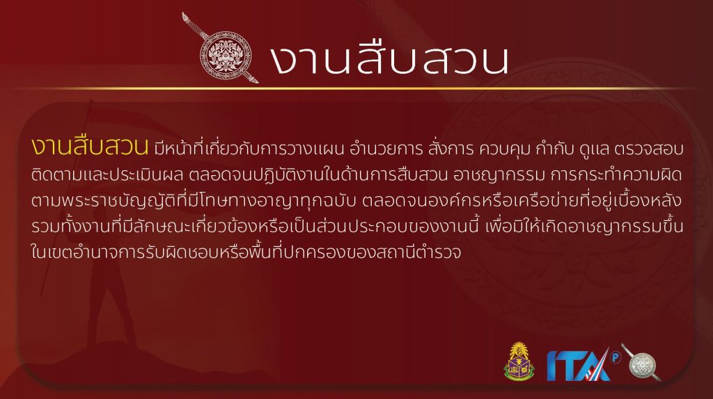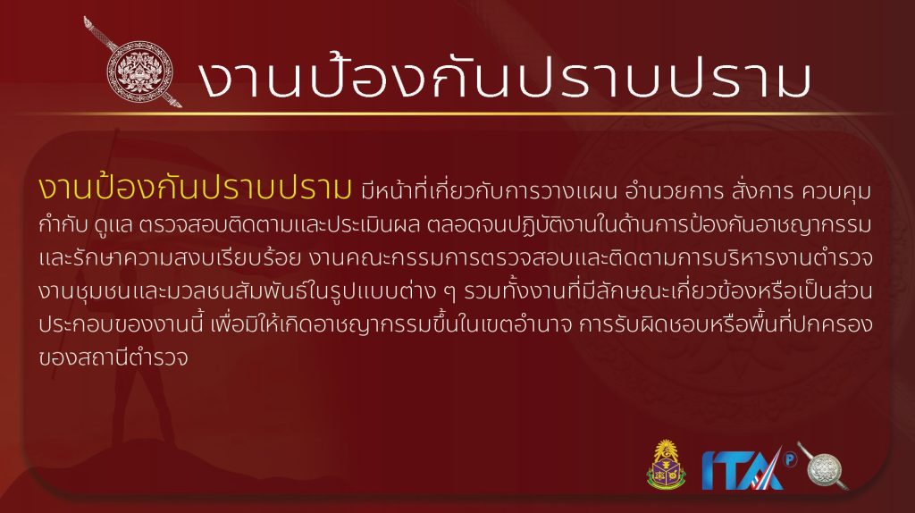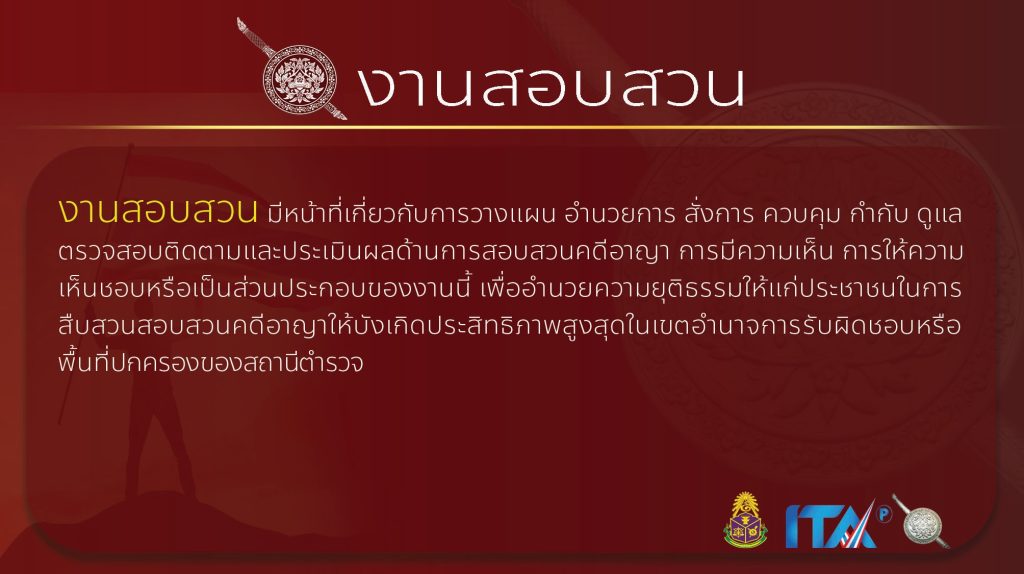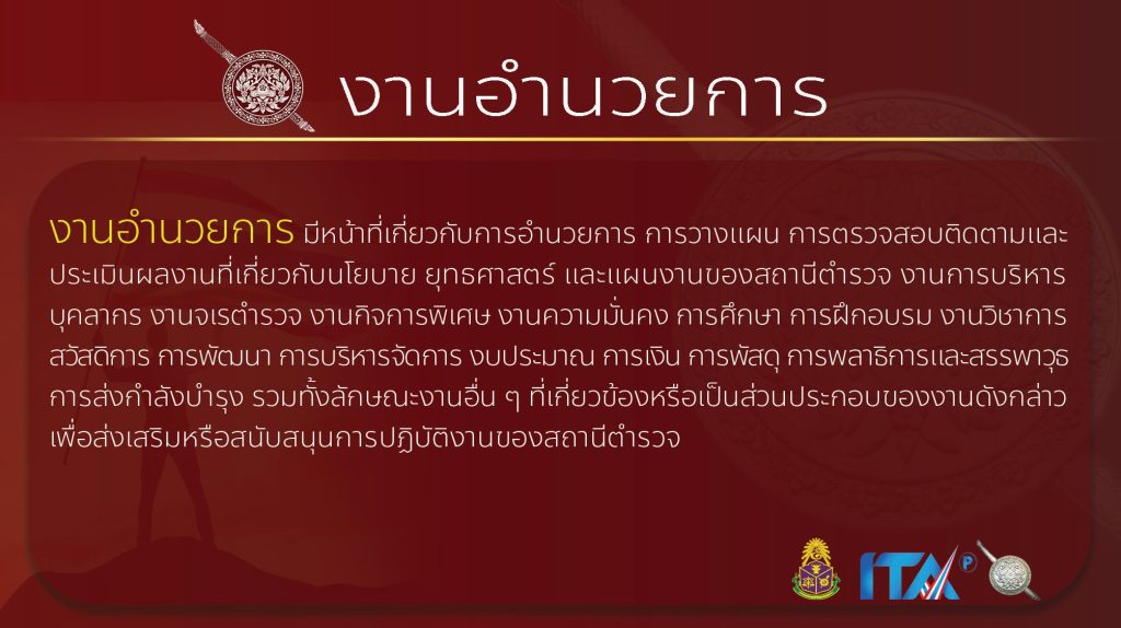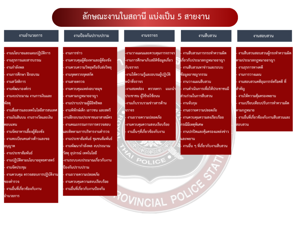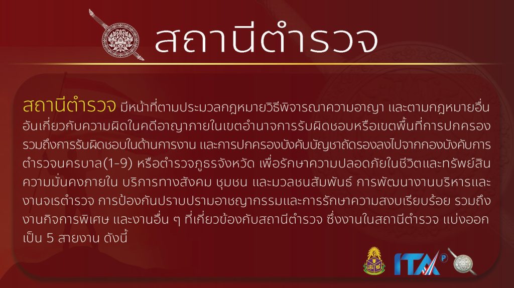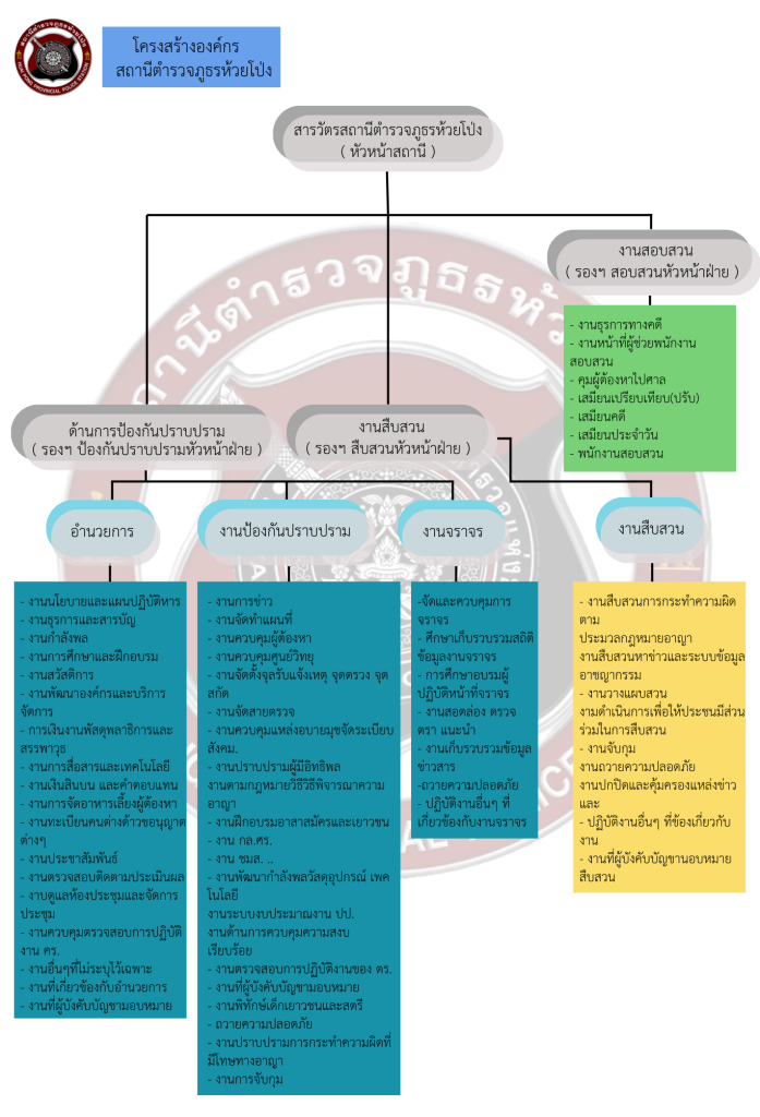 O1 : โครงสร้าง อัตรากำลังและข้อมูลผู้บริหาร โครงสร้าง อัตรากำลังพลและข้อมูลผู้บริหาร แผนผังโครงสร้างการแบ่งส่วนราชการ ของสถานีตำรวจภูธรห้วยโป่ง ข้อมูล ณ วันที่ 31 มีนาคม 2568 ข้อมูลเกี่ยวกับอำนาจหน้าที่หรือภารกิจของสถานีตำรวจ และบทบาทภารกิจความรับผิดชอบของแต่ละสายงานภายในสถานีตำรวจ ของสถานีตำรวจภูธห้วยโป่ง คำสั่งมอบหมายหน้าที่ปฏิบัติราชการภายใน ของสถานีตำรวจภูธรห้วยโป่ง คำสั่งมอบหมายหน้าที่ในสถานีตำรวจ ประจำเดือน มีนาคม พ.ศ.2568 คำสั่งมอบหมายหน้าที่ในสถานีตำรวจ ประจำเดือน กุมภาพันธ์ พ.ศ.2568คำสั่งมอบหมายหน้าที่ในสถานีตำรวจ ประจำเดือน มกราคม พ.ศ.2568คำสั่งมอบหมายหน้าที่ในสถานีตำรวจ ประจำเดือน ธันวาคม พ.ศ.2567คำสั่งมอบหมายหน้าที่ในสถานีตำรวจ ประจำเดือน พฤจิกายน พ.ศ.2567คำสั่งมอบหมายหน้าที่ในสถานีตำรวจ ประจำเดือน ตุลาคม พ.ศ.2567 ระเบียบ กฎหมาย คำสั่ง ที่เกี่ยวข้อง คำสั่ง ตร. ที่ 537/2555 ลงวันที่ 27 กันยายน 2555 เรื่อง การกำหนดอำนาจหน้าที่ของตำแหน่งในสถานีตำรวจคำสั่ง ตร. ที่ 538/2555 เรื่อง การปฏิบัติและอำนาจหน้าที่ความรับผิดชอบของพนักงานสอบสวนและผู้ปฏิบัติหน้าที่งานสอบสวนประกาศสำนักงานตำรวจแห่งชาติ เรื่อง การกำหนดเขตอำนาจการรับผิดชอบหรือเขตพื้นที่การปกครองของส่วนราชการพระราชกฤษฎีกาแบ่งส่วนราชการสำนักงานตำรวจแห่งชาติ พ.ศ.๒๕๖๗กฎกระทรวงแบ่งส่วนราชการเป็นกองบังคับการหรือส่วนราชการหรือหน่วยงานอย่างอื่นหรือในระดับต่ำลงไป ในสำนักงานตำรวจแห่งชาติ พ.ศ. ๒๕๖๗พระราชบัญญัติตำรวจแห่งชาติ พ.ศ.2565 Facebook iconFacebookTwitter iconTwitterLINE iconLine