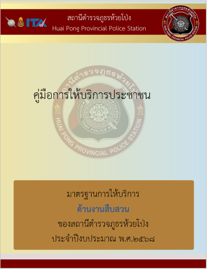 O9 : คู่มือการให้บริการประชาชน คู่มือการให้บริการประชาชน คู่มือการให้บริการประชาชน ของสถานีตำรวจภูธรห้วยโป่ง ข้อมูล ณ วันที่ 31 มีนาคม พ.ศ. 2568 คู่มืองานธุรการและอำนวยการ คู่มืองานป้องกันปราบปราม คู่มืองานจราจร คู่มืองานสืบสวน คู่มืองานสอบสวน คู่มือการให้บริการประชาชน ของสำนักงานตำรวจแห่งชาติ Download เอกสาร คู่มือประชาชน ของสำนักงานตำรวจแห่งชาติ ที่นี่👇 Download เอกสาร คู่มือประชาชน ของสำนักงานตำรวจแห่งชาติ ที่นี่ 👇 พันธะสัญญาการให้บริการประชาชน ของสถานีตำรวจภูธรห้วยโป่ง พันธะสัญญาของงานธุรการและอำนวยการ พันธะสัญญาของงานป้องกันปราบปราม พันธะสัญญาของงานสอบสวน พันธะสัญญาของงานจราจร Facebook iconFacebookTwitter iconTwitterLINE iconLine